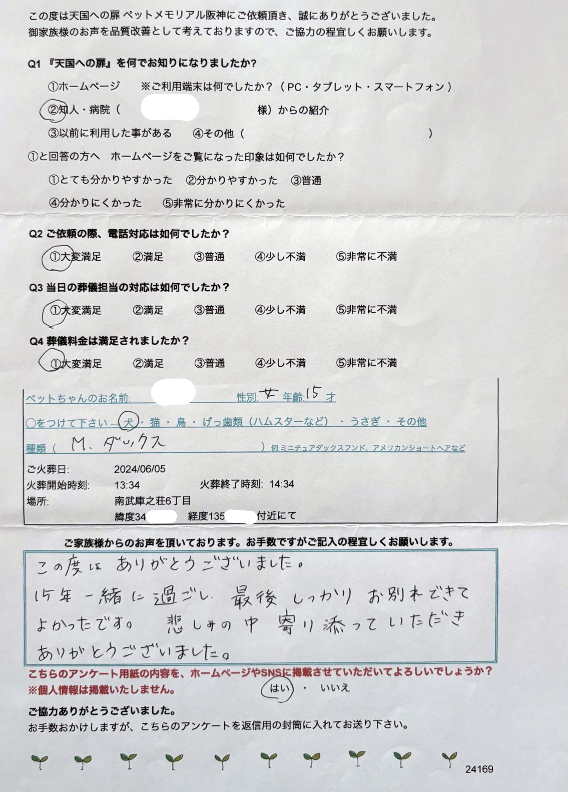 15年一緒に過ごし、最後しっかりお別れできてよかったです。